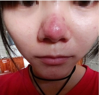 酒糟鼻又称酒渣鼻,赤鼻和玫瑰痤疮,酒糟鼻是发于鼻部的一种慢性炎症皮肤病。酒糟鼻通常表现为外鼻皮肤发红,鼻尖最为显著。由于局部皮脂腺分泌旺盛,鼻子显得又红又亮,病情进一步发展,皮肤会增厚,甚至长出小脓疮或皮疹,外观粗糙不平。