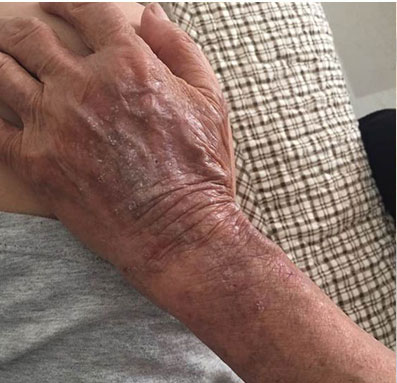 常因急性、亚急性湿疹再发作发作不愈转为慢性湿疹;亦可开始不明显,因经常搔抓、摩擦或其他刺激,以致发病开始时即为慢性湿疹。其表现为患处皮肤浸润肥厚,表面粗糙,呈暗红色或伴色素沉着,皮损多为局限性斑块。