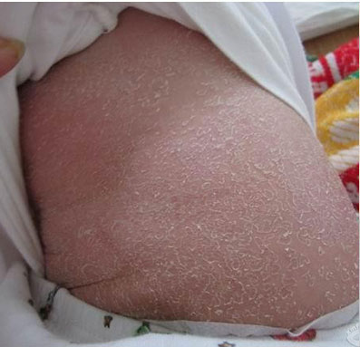 鱼鳞病主要表现为皮肤干燥、四肢伸侧或躯干部皮肤干燥、粗糙,伴有菱形或多角形鳞屑,外观如鱼鳞状或蛇皮状,通常伴有鱼鳞状脱屑。大部分患者为寒冷干燥季节加重,温暖潮湿季节缓解,易再发作!